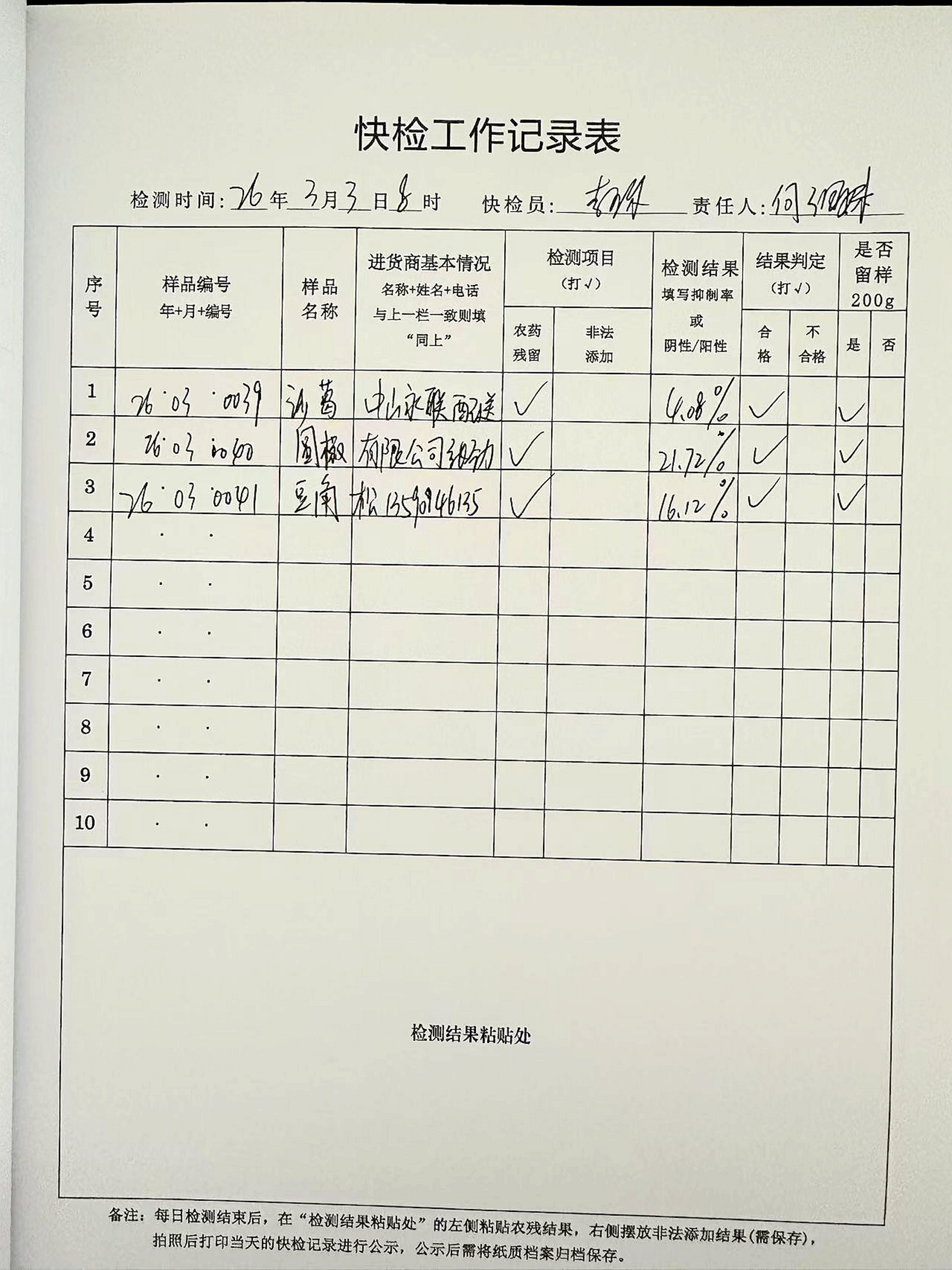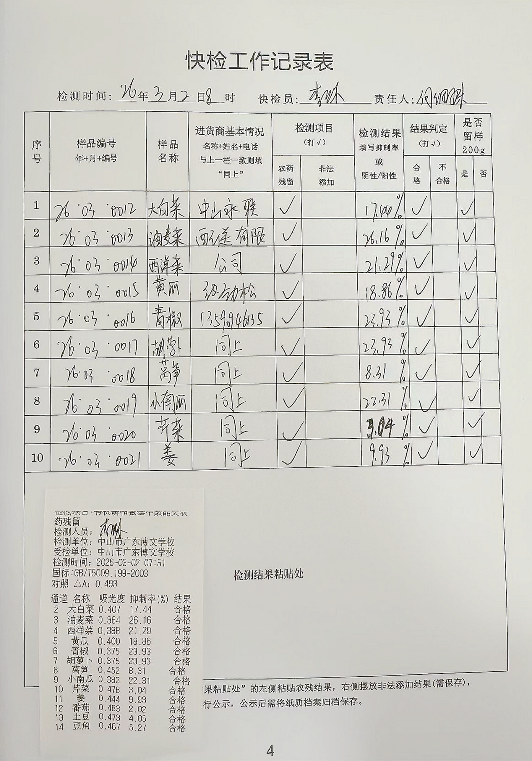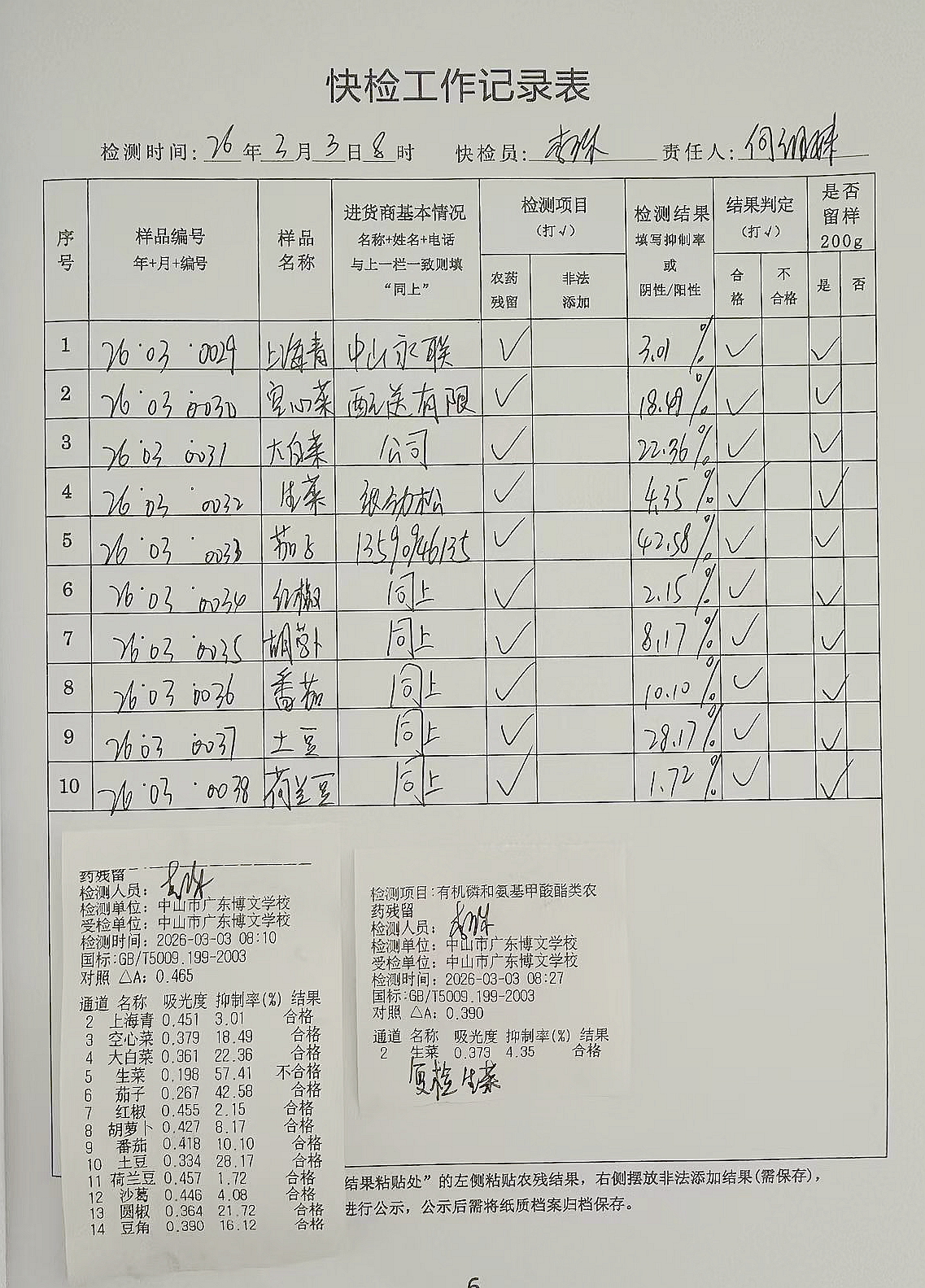 广东博文学校食堂食材快检公示第1周