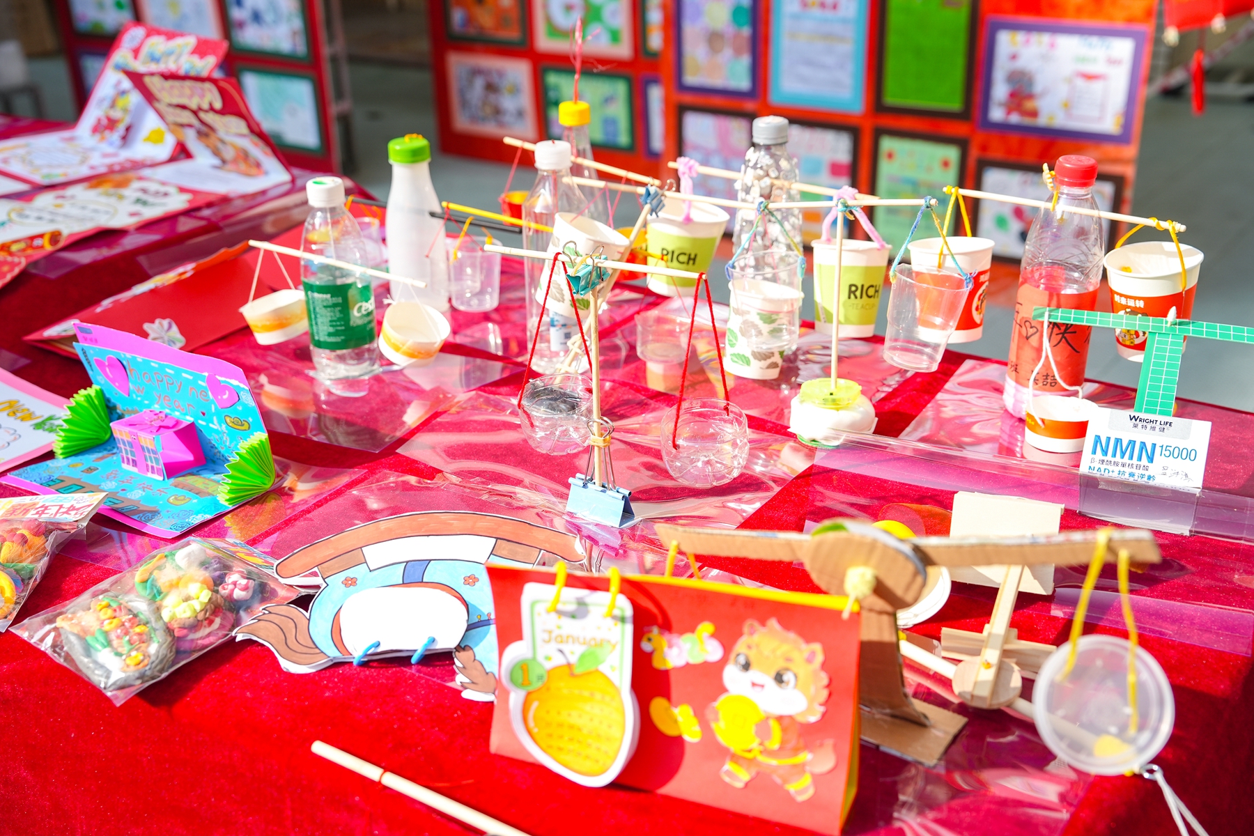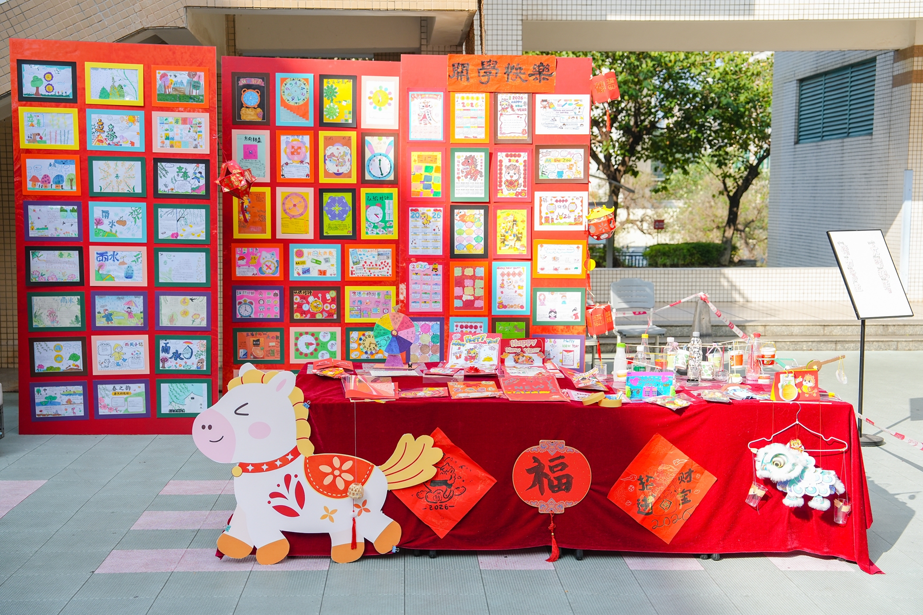 三年级聚焦“学科融合、实践赋能”,将正雅教育融入语文、数学、英语多学科实践,助力学生在多元体验中提升综合素养。语文展区内,毛笔书写的“福”字虽稚嫩却工整,黏土捏制的年夜饭栩栩如生,搭配温情满满的寒假照片,每一件作品都藏着孩子们对新春的真诚祝福与团圆期盼;数学展区里,孩子们用废旧纸杯、筷子搭建的天平精巧实用,立体分数转盘可灵活转动,匠心独具的马年日历色彩明快,让孩子们在动手创意中深化知识理解、锤炼思维能力;英语展区中,创意立体贺卡打开即见精美造型,主题手抄报图文并茂,既有家庭温馨瞬间,也有可爱动物形象,传递着跨越语言的童心与诚意,让孩子们在趣味实践中扎实提升语言运用能力。