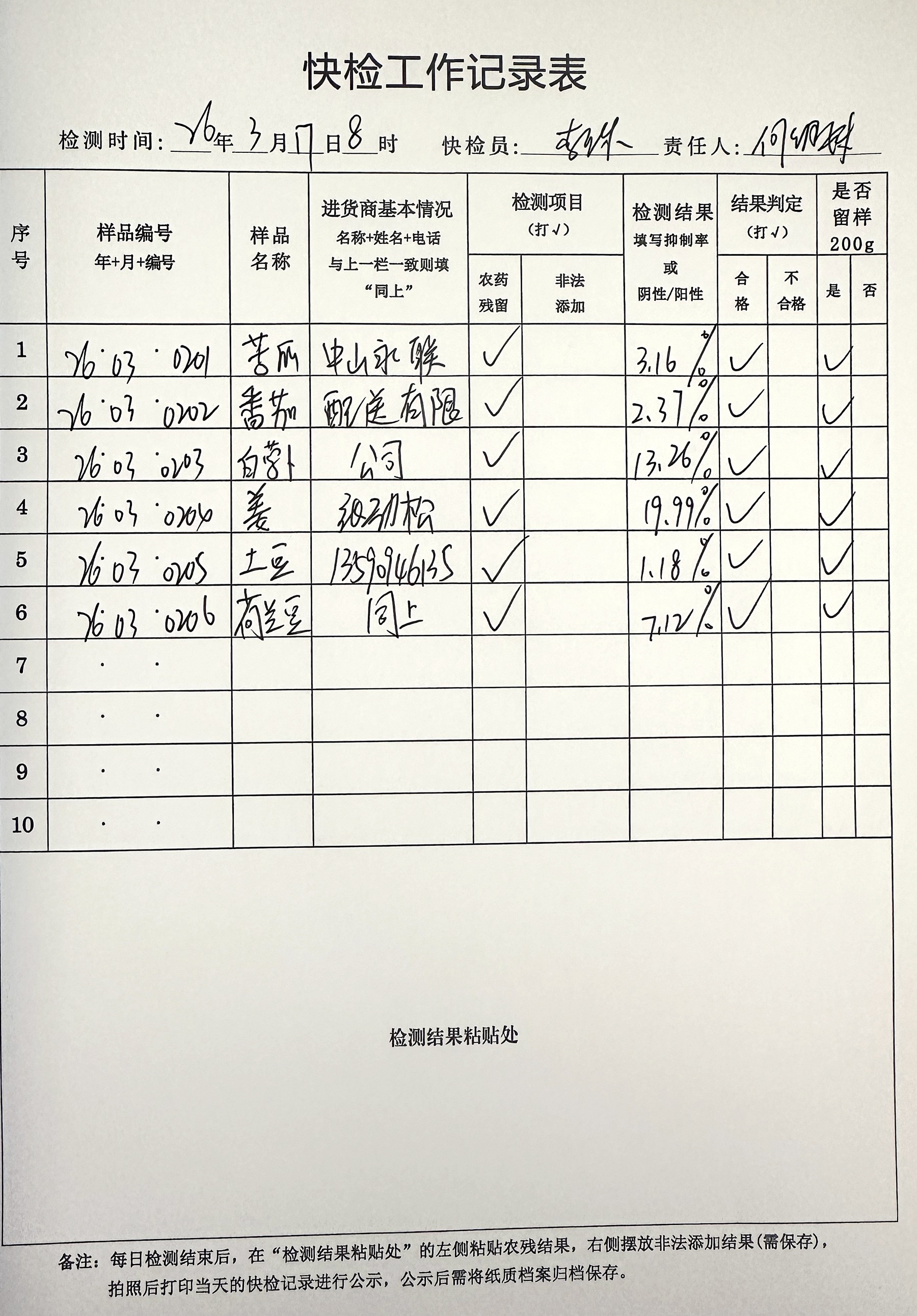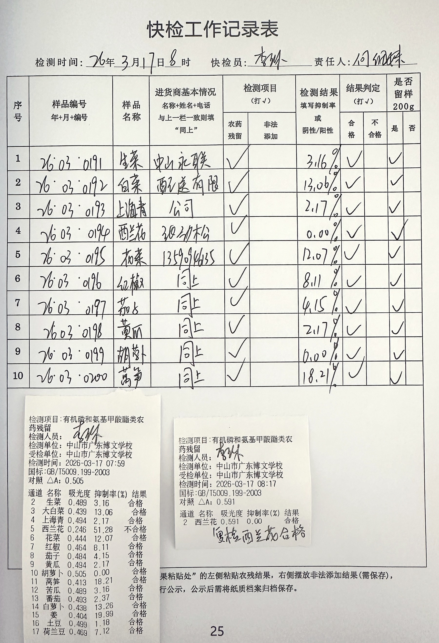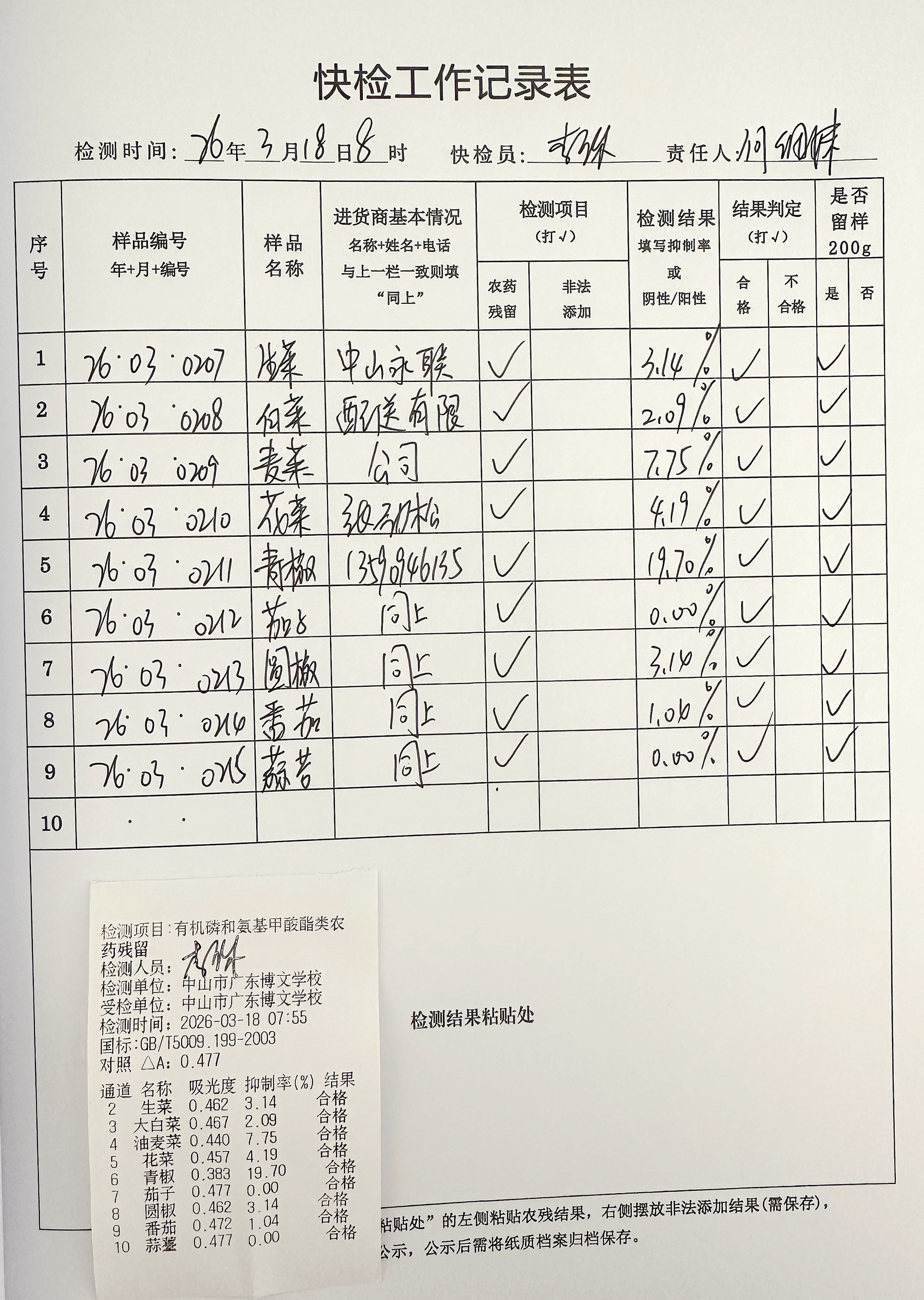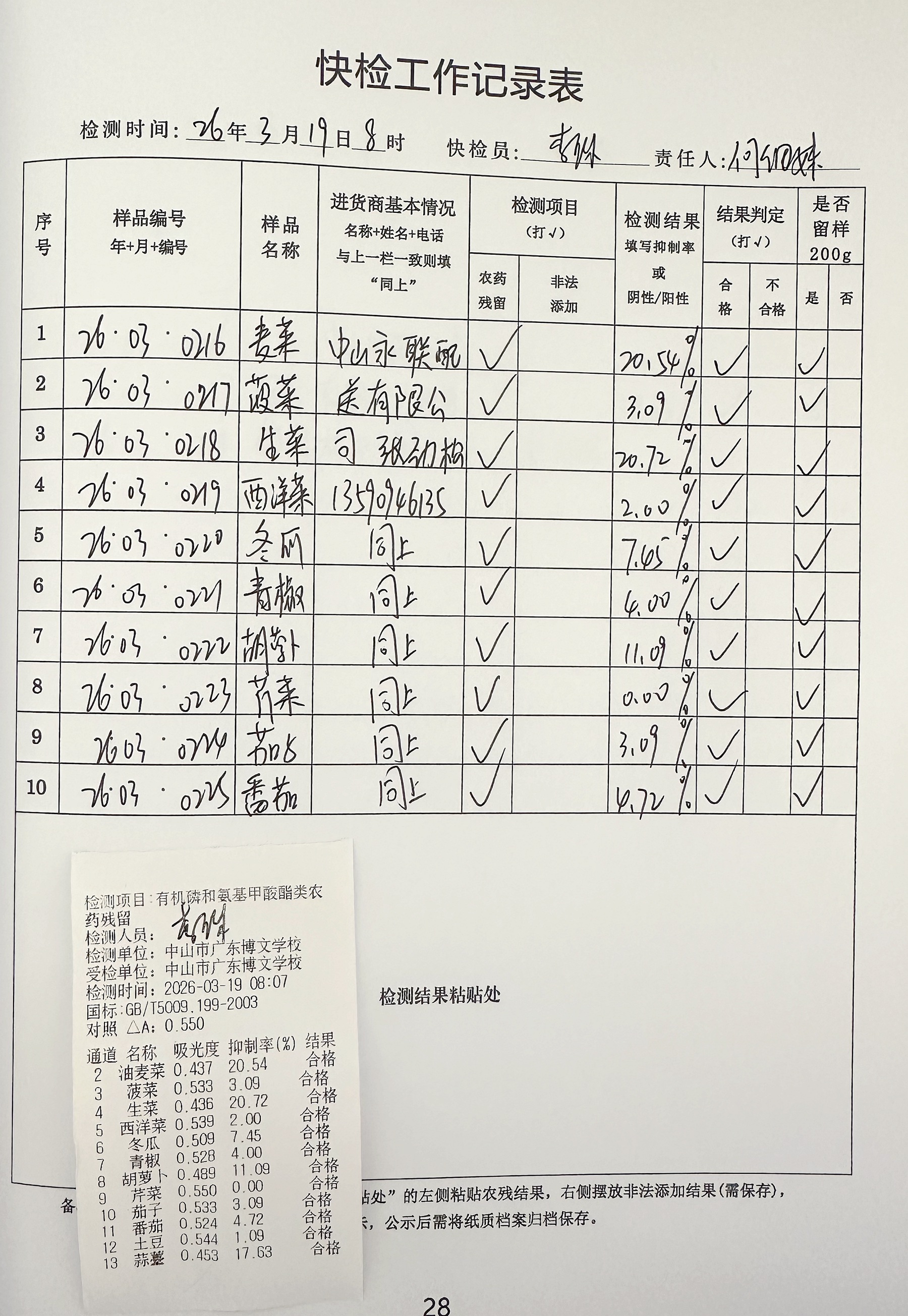 广东博文学校食堂食材快检公示第3周