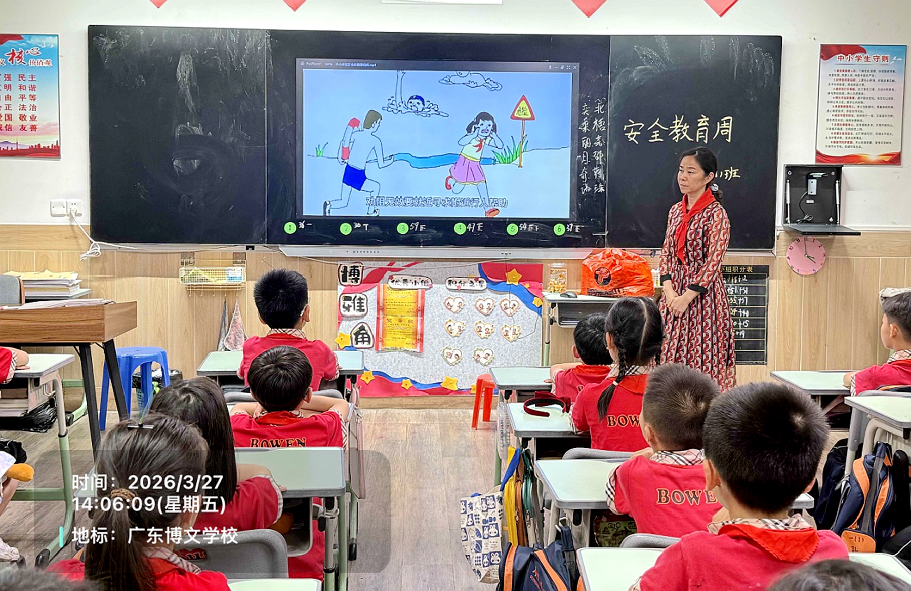 3月27日下午班会课时间,各班组织召开了安全教育周主题班会。班主任结合学生年龄特点和实际生活场景,围绕课间活动安全、上下学交通安全、消防安全等重点内容,通过案例讲解、视频展示、互动问答等形式,引导学生深刻认识安全的重要性。高年级同学纷纷表示,要以身作则,为低年级树立榜样,争做校园安全的践行者和守护者。