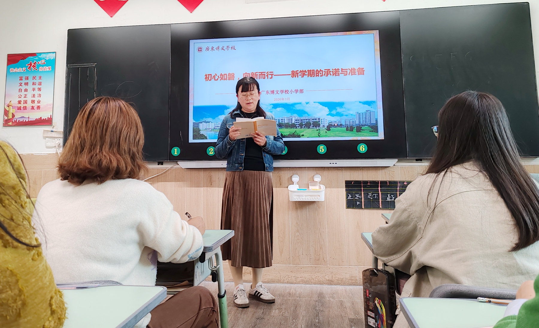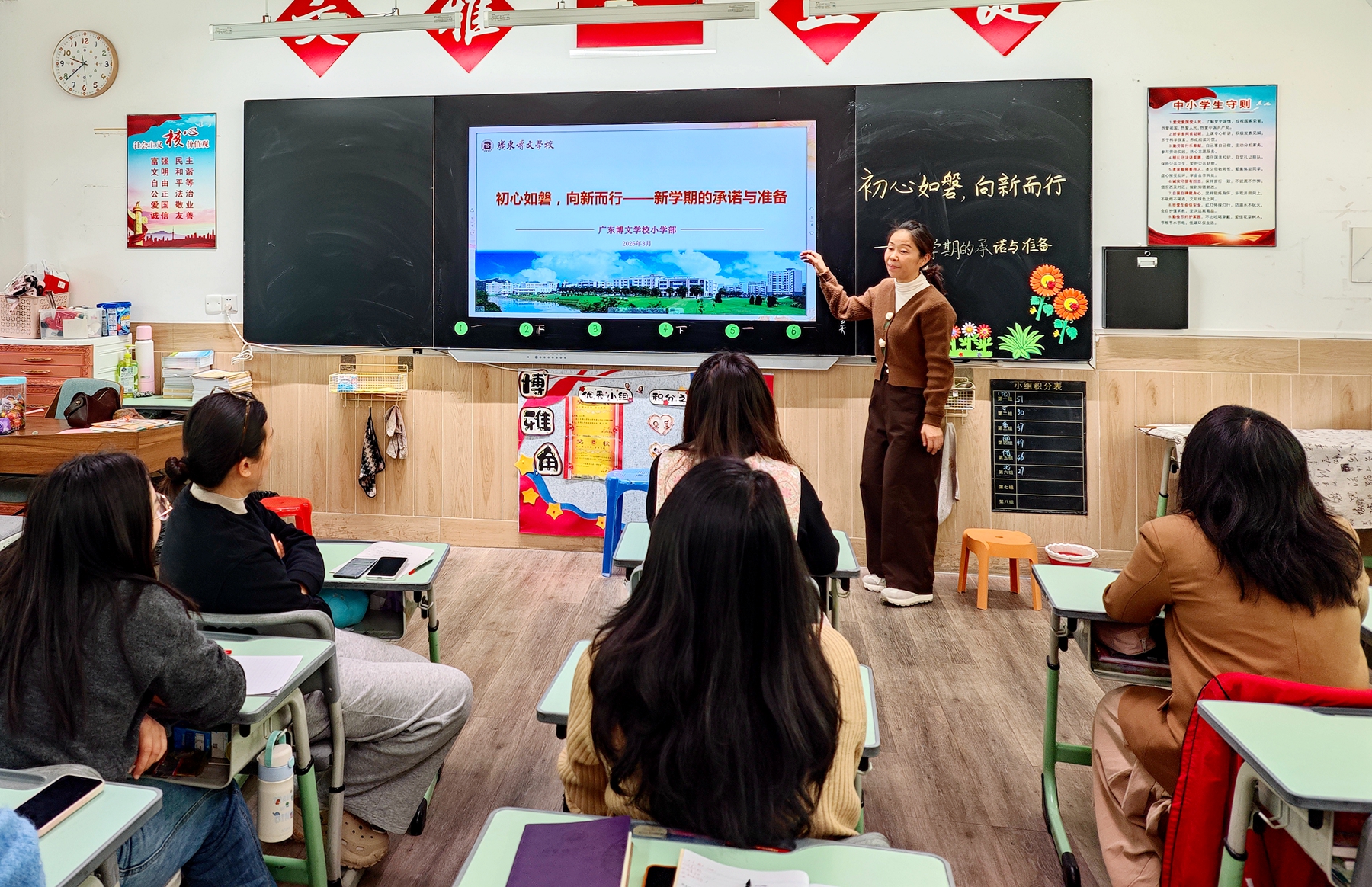 新学期,广东博文学校小学部紧扣“立博雅之校,行儒雅之教,树文雅之人”办学目标,分层推进、全域覆盖,扎实开展各年级师德师风专题学习与承诺活动,从低到高各学段教师凝心聚力,以初心为基、以实干为帆,为新学期教育教学工作筑牢坚实根基。