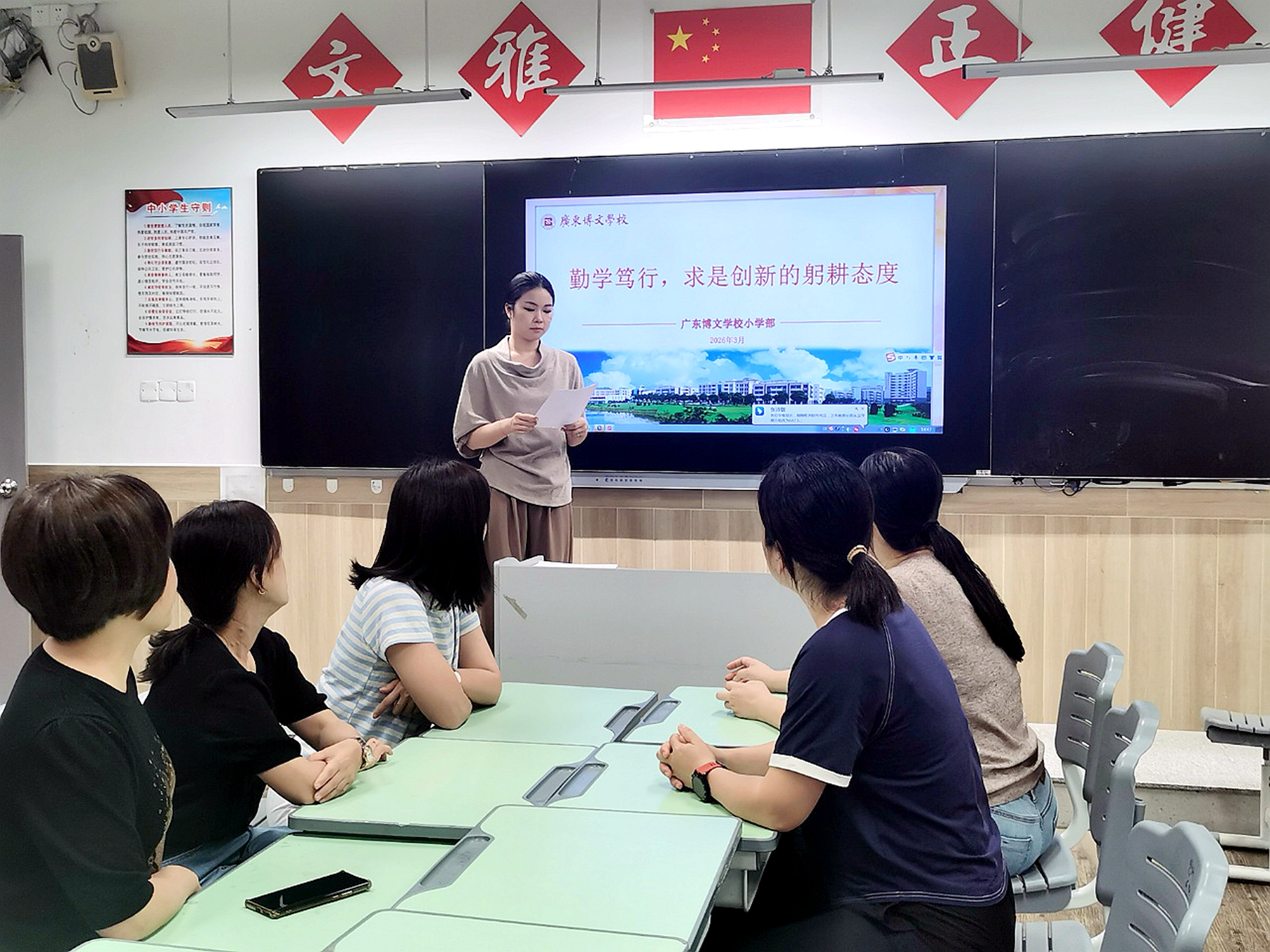 为持续深化师德师风建设,紧跟教育数字化发展浪潮,筑牢教师育人思想根基,3月份以来,广东博文学校小学部一至六年级相继开展“师德五分钟”专题学习活动,各年级围绕“勤学笃行、求是创新”核心主题,以多样化形式推动师德学习走深走实,助力教师涵养教育情怀、锤炼育人本领。
