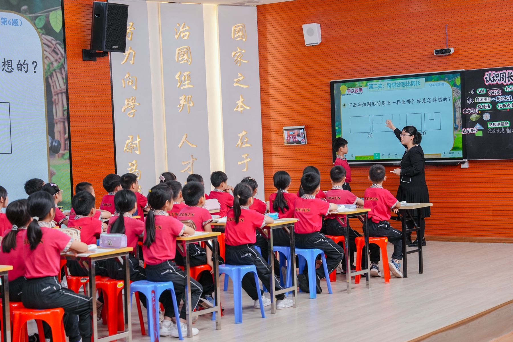 活动中,广东博文学校冯吉、开发区第一小学郑嘉欣、阜沙镇罗松小学黄敏玲三位教师,围绕三年级下册《认识周长》开展同课异构展示。三堂课设计新颖、各具特色,立足学生主体,从不同视角落实量感培养,为周长教学提供了鲜活范例。