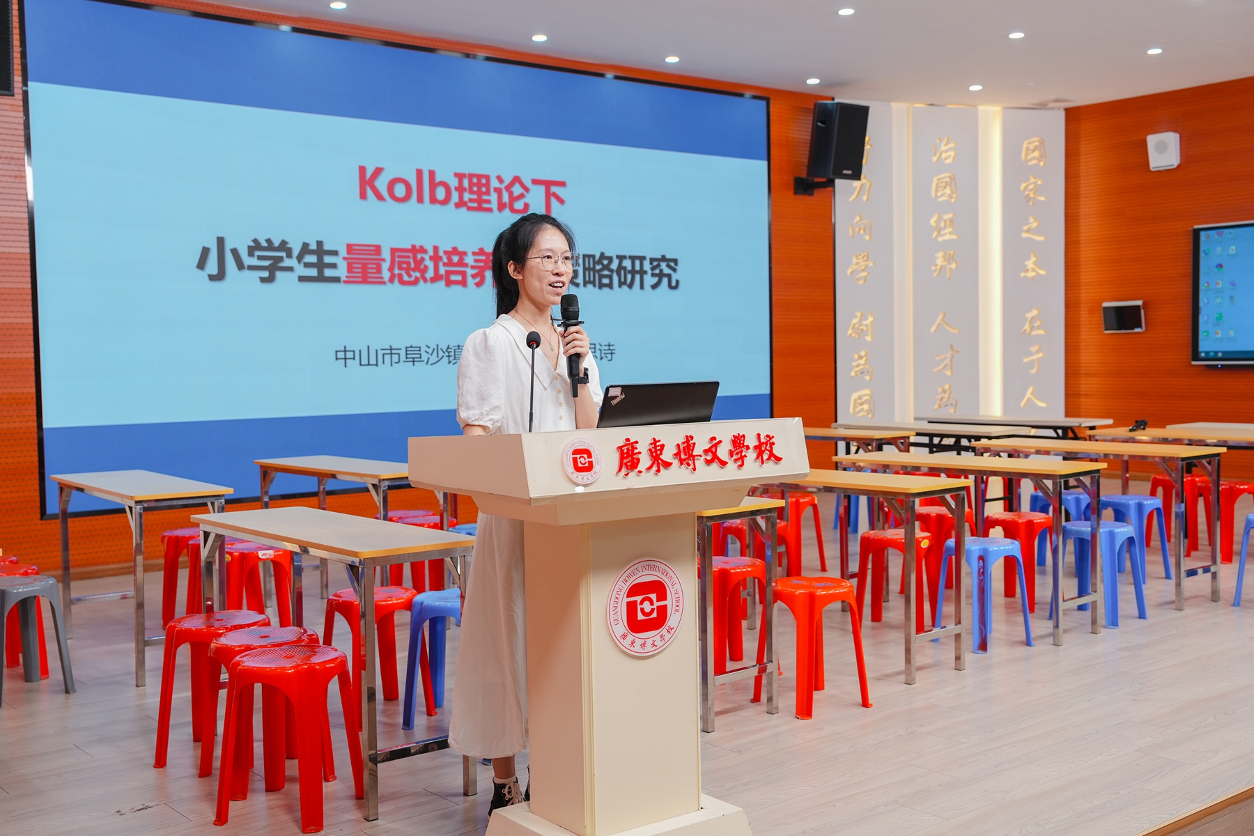 专题分享环节,阜沙镇罗松小学梁思诗老师作《Kolb理论下小学生量感培养的策略研究》微报告,结合实践案例分享理论方法,为量感教学提供新思路。随后,四校教师围绕课堂设计、重难点突破、核心素养培养等方面展开评课议课,交流深入、研讨务实。