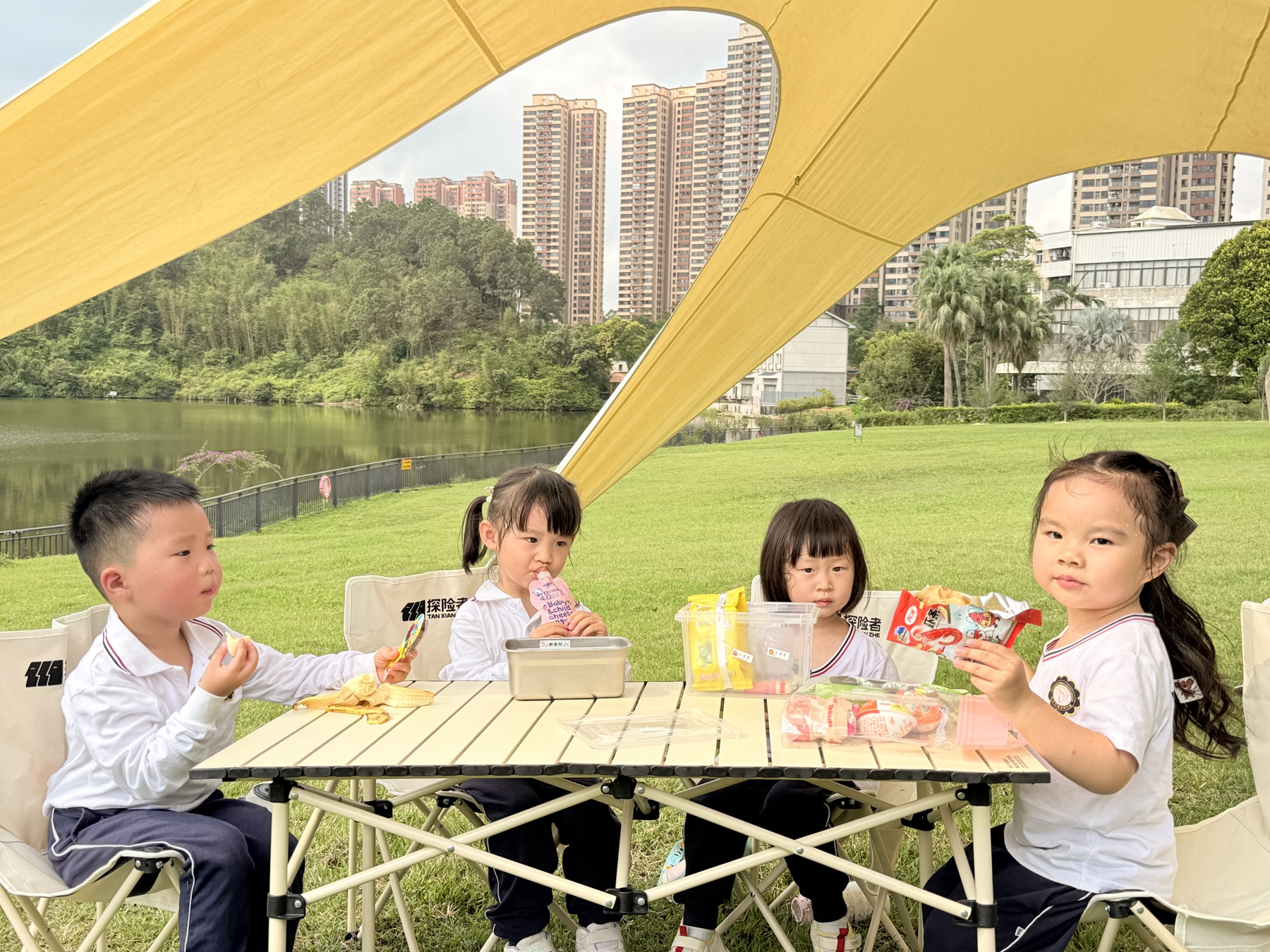 第四站:野餐时间,分享快乐与美食 玩累啦!终于到了最期待的野餐环节 宝贝们围坐在一起,拿出自己带来的小零食,你分我一块,我分你一口,一边吃着甜甜的零食,一边和小伙伴说着悄悄话,晒着暖暖的太阳,感受着春天的美好,真是太幸福啦!