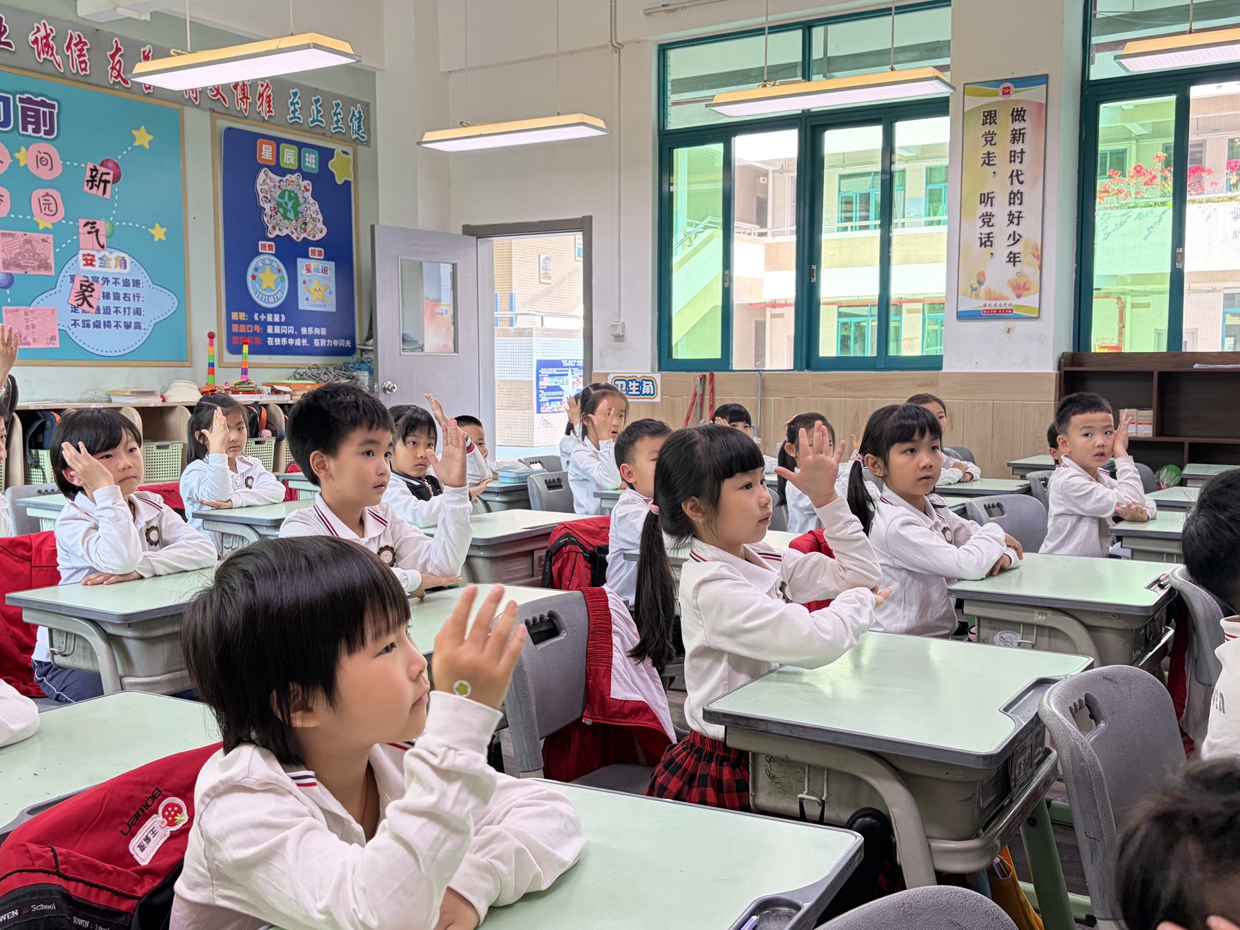 参观小学课室:明亮的窗户、整齐的桌椅、黑板上工整的字迹,还有哥哥姐姐们认真学习的模样,宝贝们忍不住小声感叹:“小学的课室真整洁!”