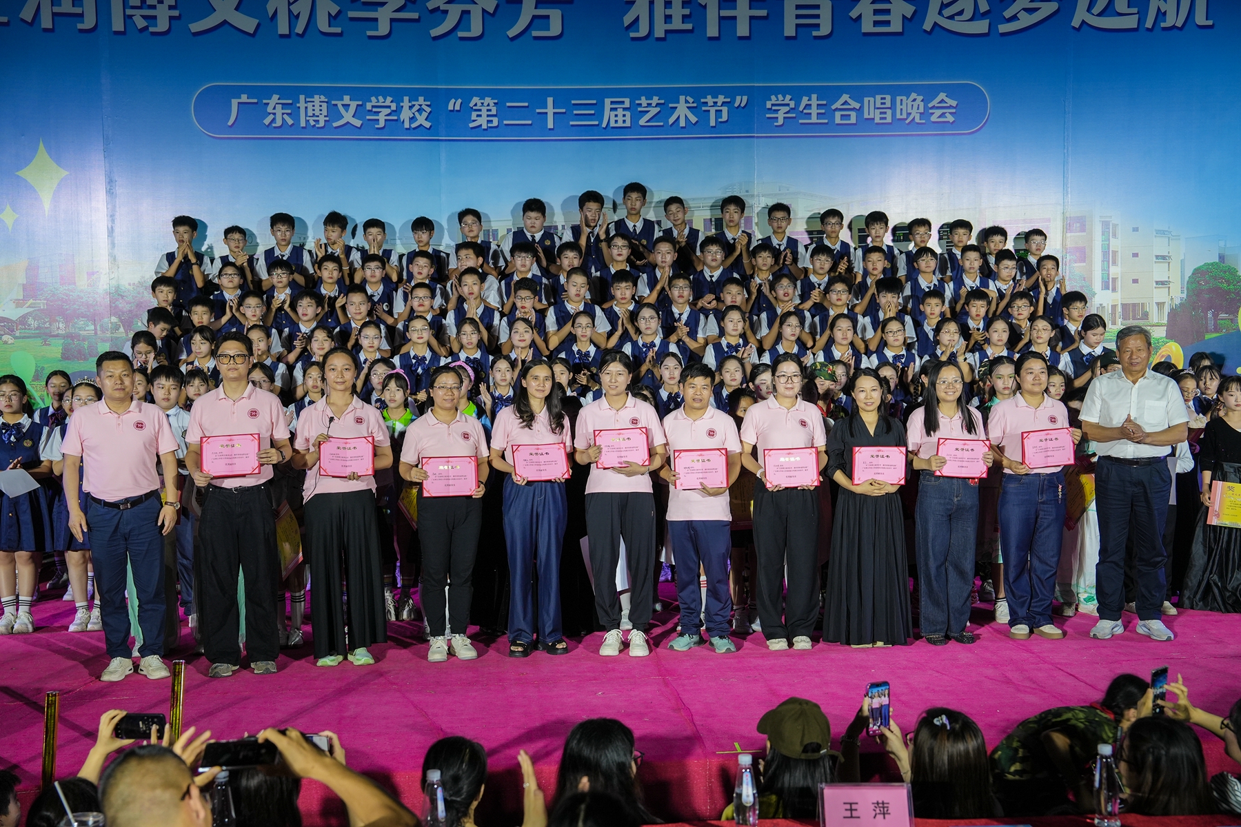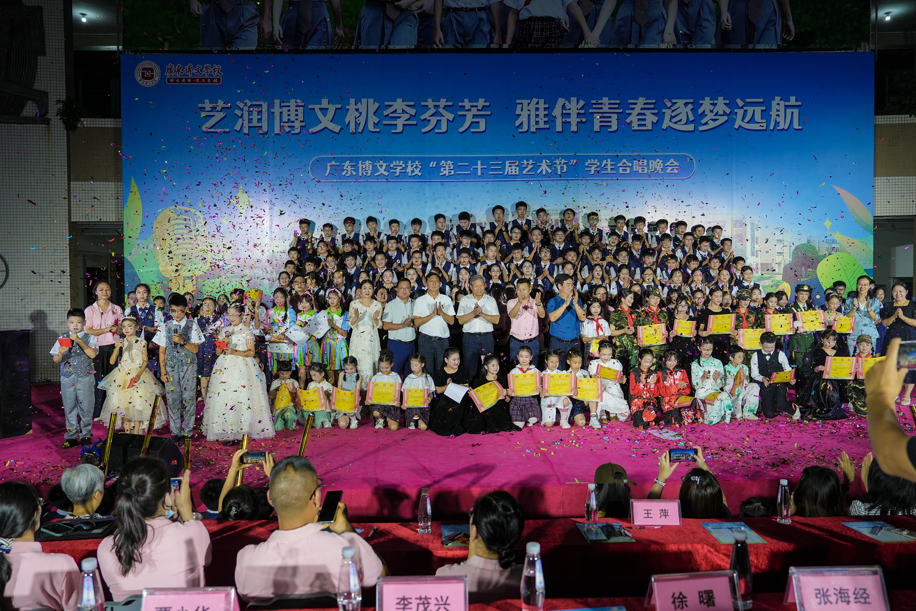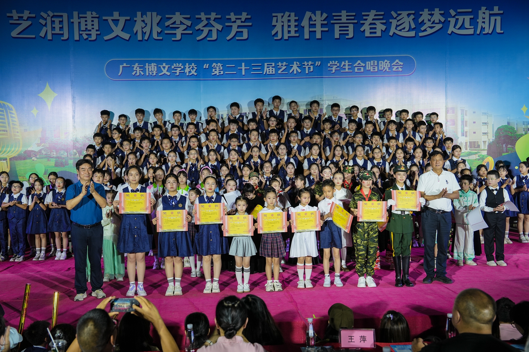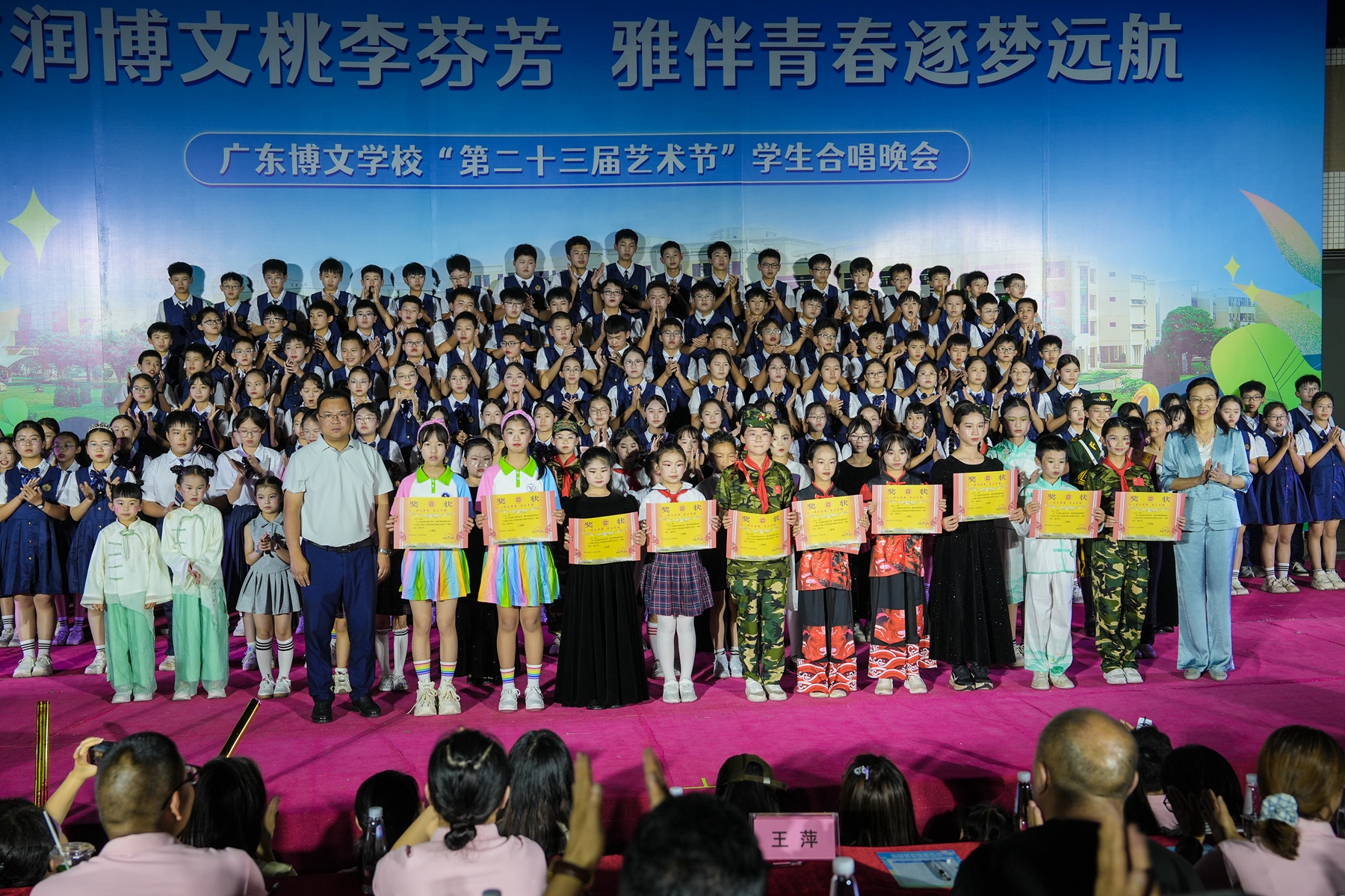 为丰富校园文化生活,深化美育教育成果,展现博文少年朝气蓬勃、向上向善的精神风貌,2026年4月22日晚,广东博文学校小学部“艺润博文桃李芬芳 雅伴青春逐梦远航”主题合唱比赛温情启幕、圆满上演。校长张海经,党支部书记、副校长李敏,副校长孙德新,德育总监李茂兴,高中部校长杨志琴,初中部校长覃少华,小学部校长徐曙,艺体处主任王萍等领导嘉宾亲临现场,与全体师生共同见证这场视听盛宴。