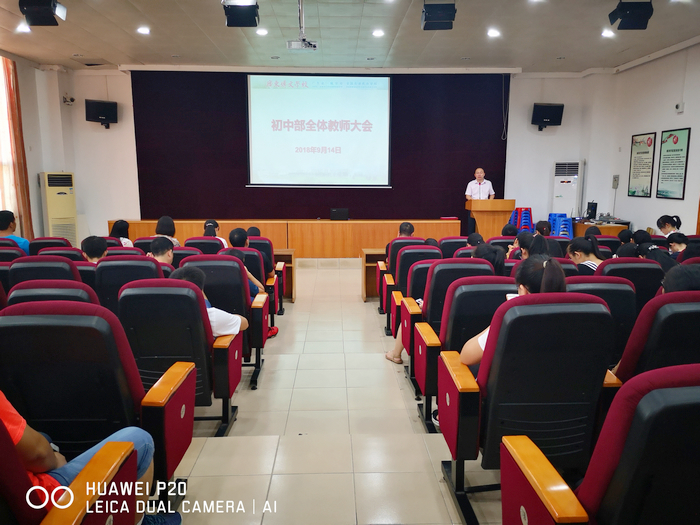 9月14日下午,广东博文学校初中部在综合楼407室召开了全体教师会议。会议由学部校长汤勇主持,初中部全体教师参加了本次会议。