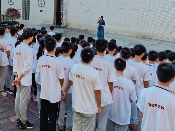 九年磨一剑,争分夺秒凌绝顶。为了激发初三学生的拼搏精神,增强信心,激励学生以最佳精神面貌迎接初三的挑战,广东博文学校初三年级于9月19日上午在星星舞台隆重举行了学习动员大会。会议由余甜主任主持,全体初三学生和班主任参加。