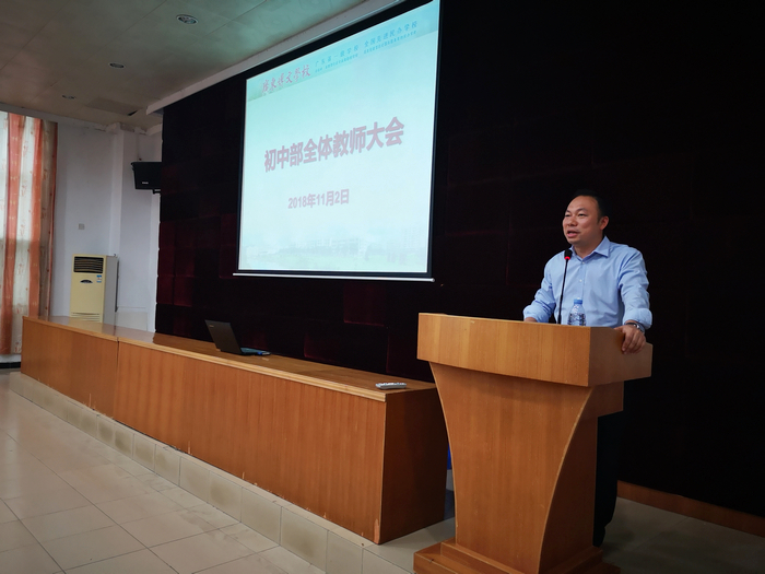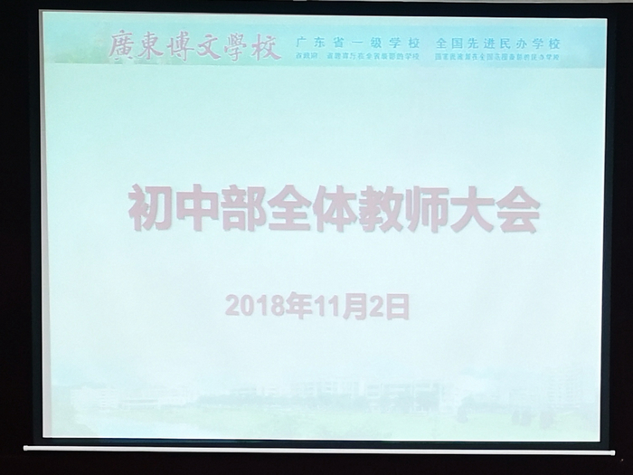 11月2日下午,广东博文学校初中部在综合楼407室召开了全体教师会议。会议由学部校长汤勇主持,初中部全体教师参加了本次会议。
