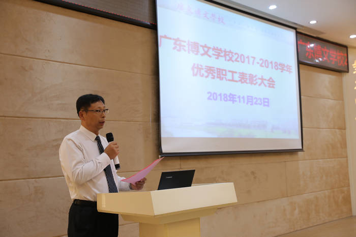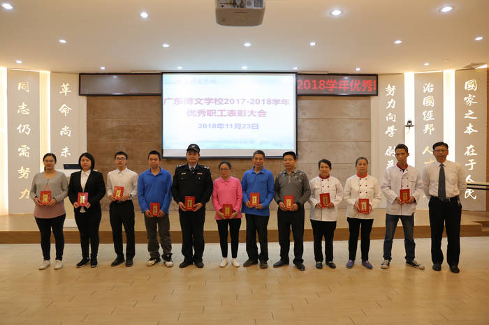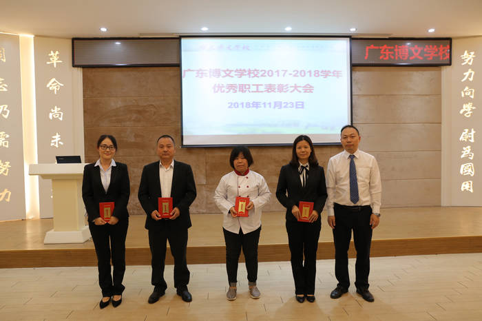 为了弘扬正能量,进一步激发职工爱岗敬业、拼搏奉献的精神,11月23日下午在广东博文学校综合楼401报告厅举行优秀职工表彰大会,表彰学校后勤服务保障工作中的优秀职工。学校初中部汤勇校长、人事部邓洁华主任、总务冯国辉主任等各部门领导出席大会,会议由高中部任德利校长主持。