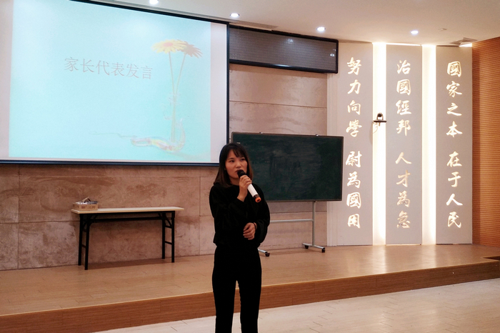 彭婴禾、陈妍、李芳、李梦璐、郭莹五位同学带来的拉丁舞表扬正式拉开了本次家长会序幕。班长陈妍同学对班级的期中考试进行了数据分析,总结了我们所取得的成绩同时也指出班级存在的问题;此外,她还以6班人的身份讲述了她在6班的感受和步入初三后的体会,语言朴实真诚,既代表了同学们的心声又为同学们后期的学习鼓足了干劲。而胡佳宝、柳家豪、陈政扬三位同学作为班级的学生代表就各自的初三前阶段学习进行了总结。郭莹爸爸、梁祖健爸爸、汪振男妈妈也分别就“压力”“亲子沟通”“榜样的力量”三方面进行了分享。同学们发自内心的声音和家长们的语重心长都激起了家长与孩子的自我思考。
