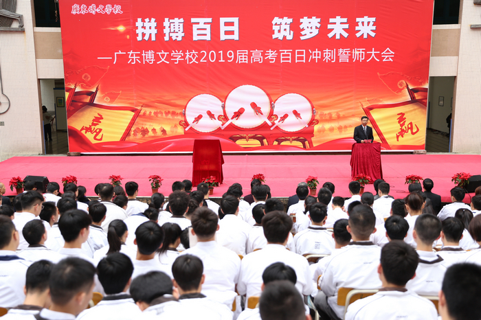 春到人间草木知,备战高考正当时。2019年2月26日,广东博文学校以“拼搏百日,筑梦未来”为主题的2019届高考百日冲刺誓师大会在中心舞台举行。广东博文学校张海经校长出席大会,大会由高中部石磊老师主持!
