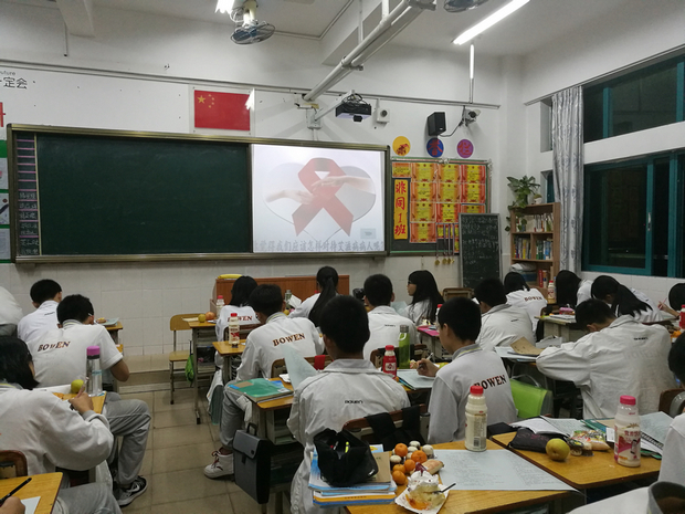 在11月份老师们给学生上了一系列有关艾滋病相关知识的主题班会,师生们一起观看了艾滋病知识宣传的视频,还利用音乐课一起学习了关爱艾滋病患者的歌曲——拥抱你,同学们了解到艾滋病是一种免疫缺陷,当感染了会经历很长一段潜伏期,病发后,免疫力急速下降,容易感染各种疾病,是一种严重危害我们健康的传染病,并且离我们也并不遥远。最令人揪心的是,目前为止并没有可临床治好艾滋病的有效方法。但是一般的接触是不会感染到艾滋病的,所以我们应该关心那些感染了艾滋病的人,而不应该歧视艾滋病患者。给他们一个拥抱,给他们一个笑脸,就是送给他们最好的礼物。