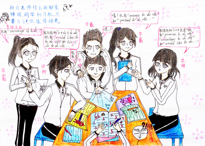 本次校园绘画展示活动,同学们主要采用图文并茂的插画形式,旨在抓住博文校园生活中共同成长的同学、师长、朋友的精彩神韵,以画为媒,与大家一起分享博文的快乐生活。学生借用美术作品表达出在熟悉的校园生活中的真实体会,他们抓住生活中人物细节的刻画,加上文字点缀,每一幅都透露着广东博文学校莘莘学子的情真意切。