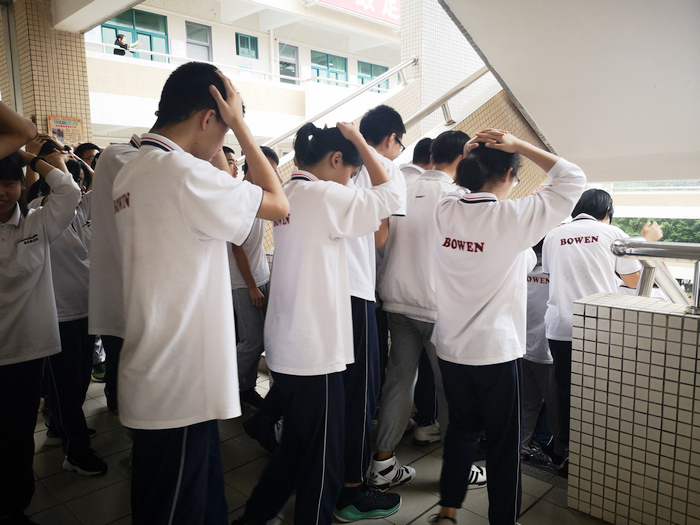 为普及防震减灾知识,增强师生的防震减灾意识和自救互救能力,提高学校应对突发地震灾害事件的综合能力,广东博文学校初中部在5月14日大课间期间,举行了地震应急疏散演练活动。