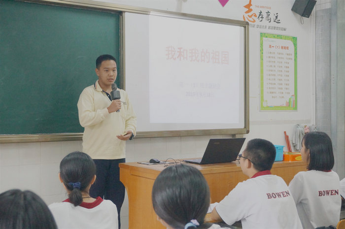 红色华诞,国旗飘扬。庆祝中华人民共和国成立70周年,为激发学生爱国情、强化爱国志。2019年9月18日,广东博文学校高中部开展《我和我的祖国》主题班会。