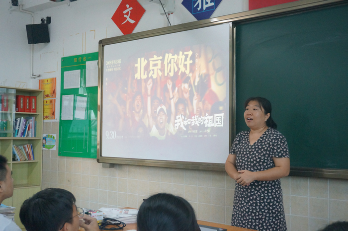 各班充分准备主题班会,其形式新颖。有的班级观看阅兵式精彩视频,了解革命先辈的奋斗历史和国家建设的辉煌成就;有的班级合唱《歌唱祖国》、《我和我的祖国》,用激动人心的歌曲赞美祖国;有的班级学生分享关于70周年国庆阅兵观后感,“我幻想着自己也是国旗护卫队的一员,将这鲜红的五星红旗升上蓝天,将新青年的新时代使命升上蓝天!国歌响起,红旗飘扬,我们共同缅怀革命先驱的伟大历程,共同见证我们这一代人的新长征。作为新青年的我们,带着满腔热血,我们将共同谱写新时代的美好篇章”;有的班级以爱国诗词朗诵、爱国英雄故事讲述等多种形式,深情表达对祖国母亲恒久的爱……