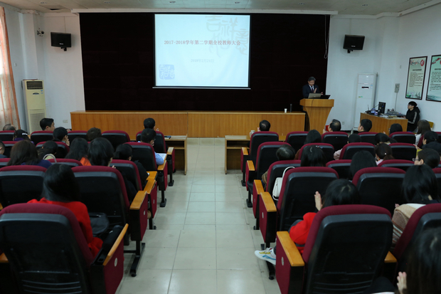 新学期,新气象!2018年2月24日下午,广东博文学校在综合楼报告厅隆重召开新学期全校教师大会,大会由高中部校长任德利主持,全校教师参加了会议。