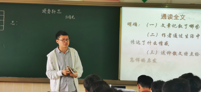 刘继科老师讲的《故都的秋》,充分体现了散文“形散神不散”的特点;覃素萍老师讲的《春夜宴从弟桃李园序》,构思由浅入深,设计别具匠心,语言简洁精练,让人受益匪浅;黄宇欣老师讲的《项脊轩志》,针对性强,互动性好,适时鼓励,不急不躁。