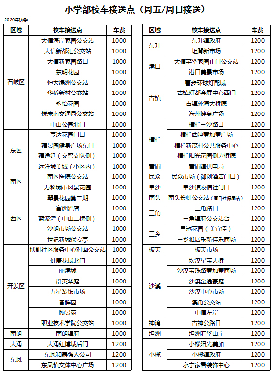 广东博文学校小学部校车接送点(周五/周日接送)